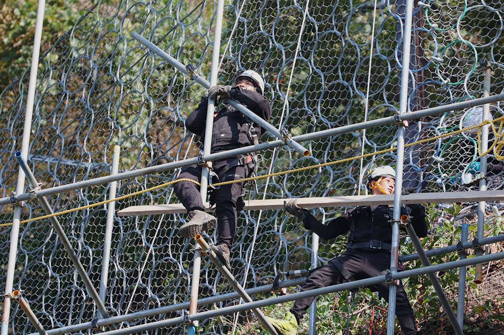 当社で最も得意としているのが、法面や吊り足場、ボーリング調査用の足場などの高い技術が必要な特赦な工法です。
